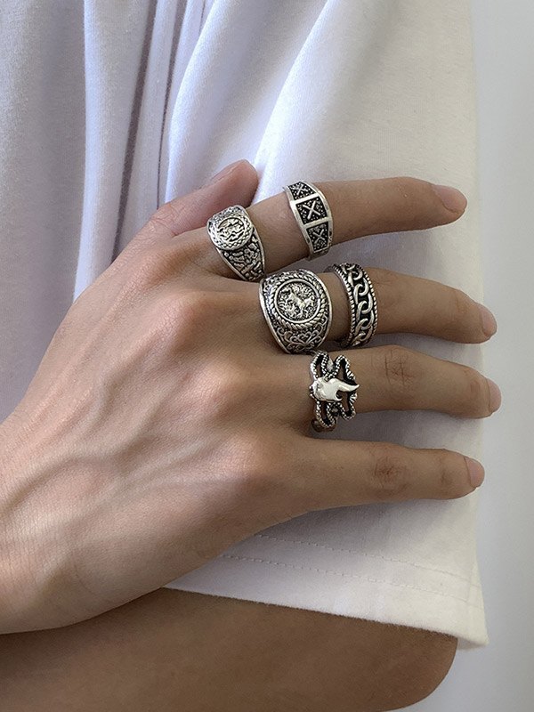 Men’s 5pcs Engraved Silver Ring