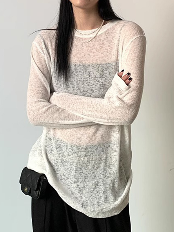 Plain Crewneck Casual Thin Long Sleeve Knits