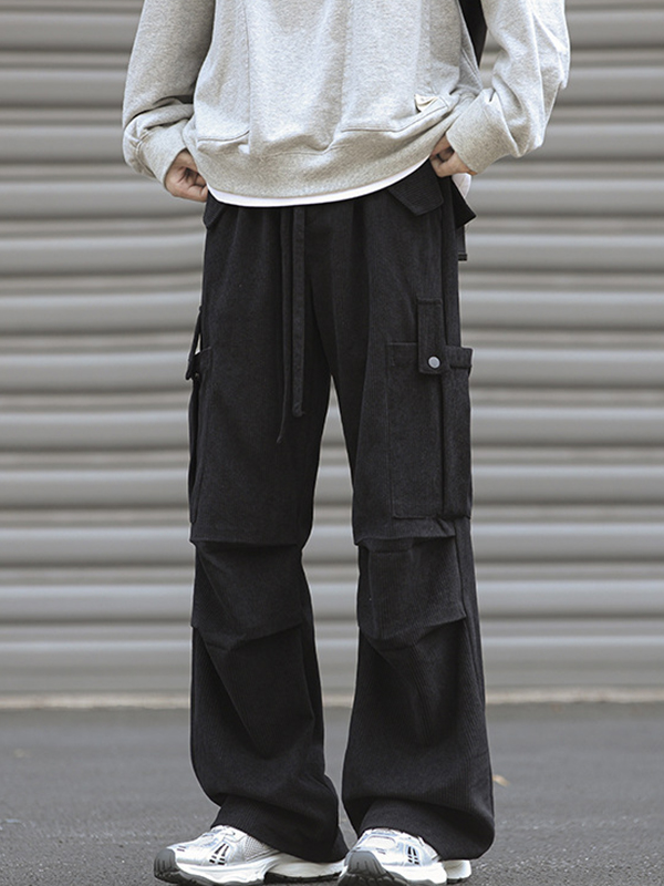 Men’s Vintage Corduroy Ruched Pocket Dangle Cargo Pants