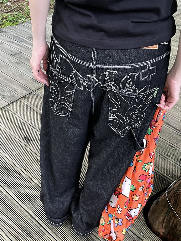 American Embroidered Wide Legs Boyfriend Jeans