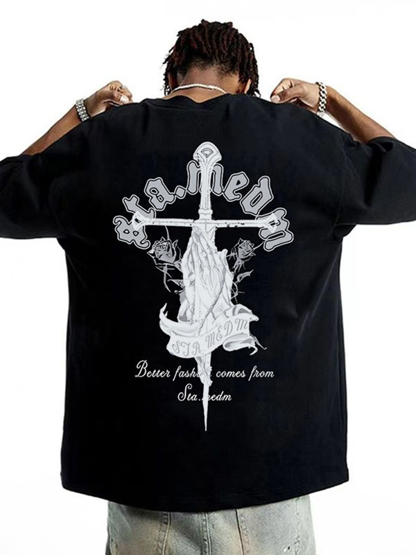 Men’s Vintage Cross Print Ripped Sweater