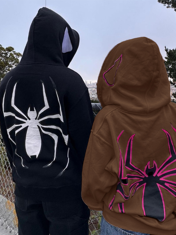 Punk Spider Print Oversized Hoodie