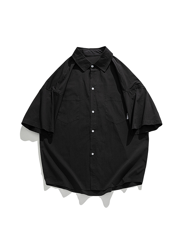 Retro Solid Color Pocket Short Sleeve